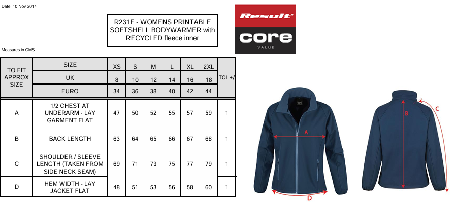 Decorative top stitch. Full front zip. Zip closing front pockets. Chin guard. Slim fitted waist. Elastane-free, crimped yarn stretch easy to print fabric. Microfleece inner provides extra warmth. Neutral label. Elasticised bound cuff.Decoration Guidelines:Decorating methods: Embroidery, Screen print & Transfer print. Decorators access point: Washing Instructions 40 degrees, do not bleach, do not tumble dry, do not iron, do not dry clean.